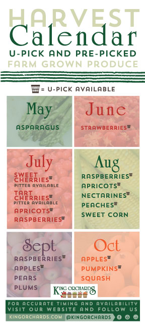 U-pick apricots, donut peaches, Red Haven peaches, and nectarines availabile throughout the month of August.