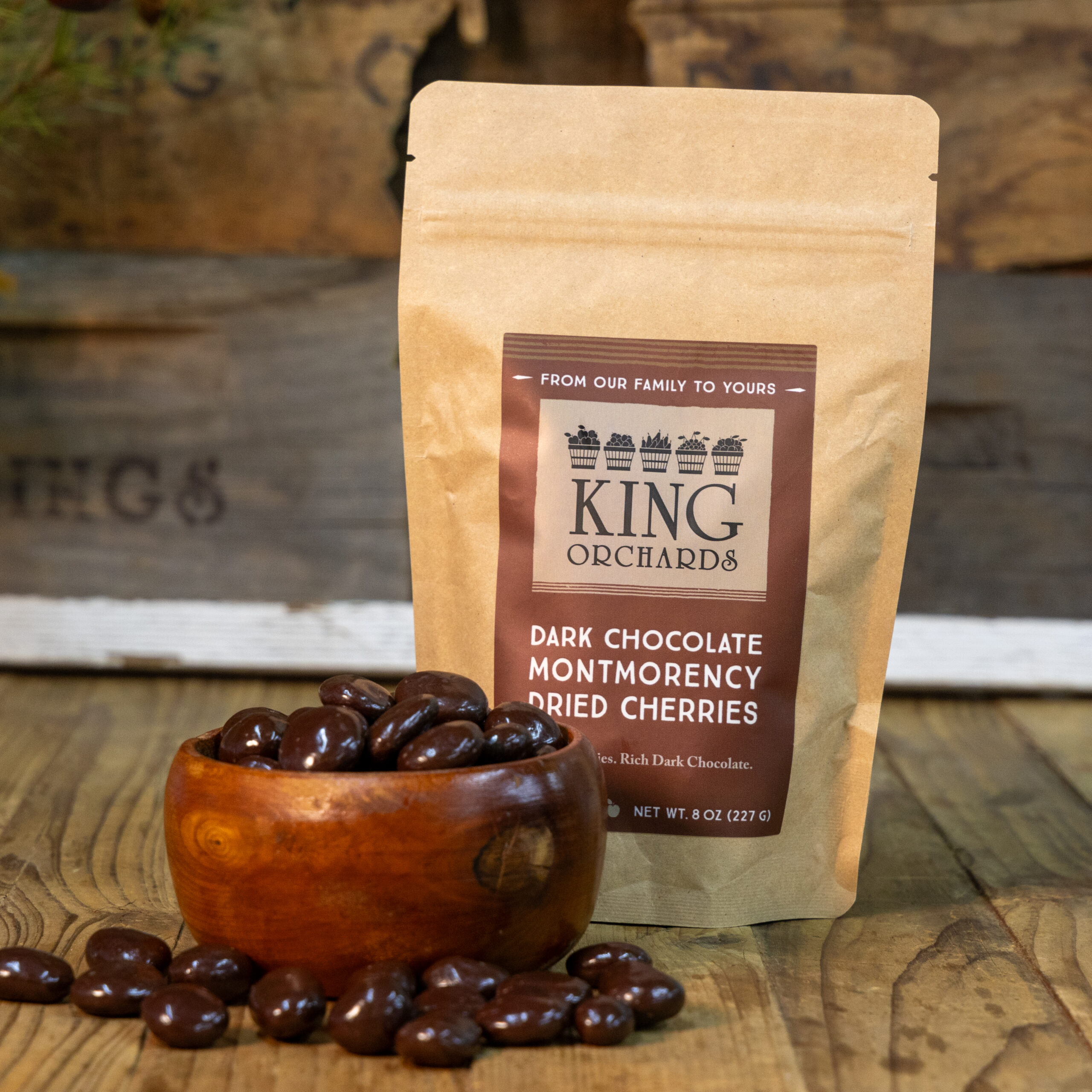 Rich, tart, and indulgent — our Dark Chocolate Covered Dried Cherries are the perfect blend of bold Northern Michigan flavor and smooth, bittersweet chocolate. Each cherry is naturally grown and dried on our family farm before being coated in decadent dark chocolate for a treat that’s both wholesome and irresistible. Enjoy them as a satisfying snack, a sweet gift, or the perfect pairing with a glass of red wine.