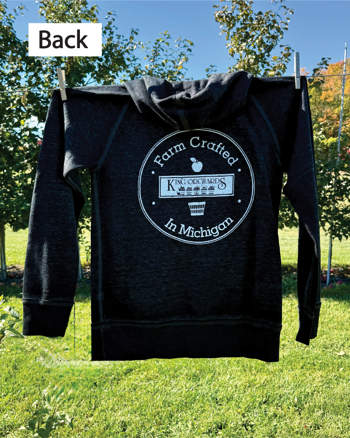 Stay warm and cozy with our King Orchards Logo Hoodie — featuring our logo on both the front and back. This cozy sweatshirt is soft, durable, and perfect for cool mornings at the farm, fall apple picking, or cozy nights by the fire. Designed for comfort that lasts season after season.