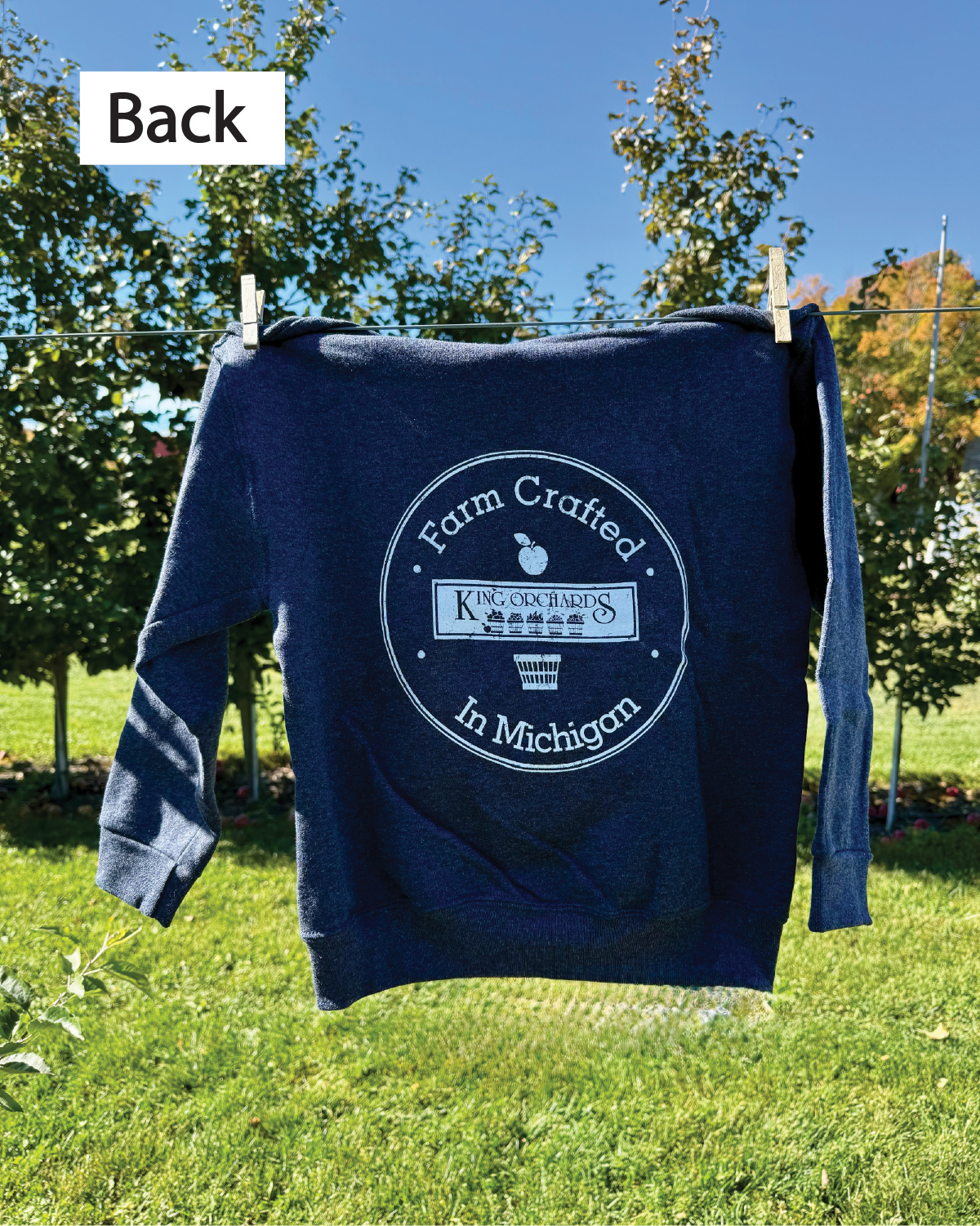 Stay warm and cozy with our King Orchards Logo Hoodie — featuring our logo on both the front and back. This cozy sweatshirt is soft, durable, and perfect for cool mornings at the farm, fall apple picking, or cozy nights by the fire. Designed for comfort that lasts season after season.