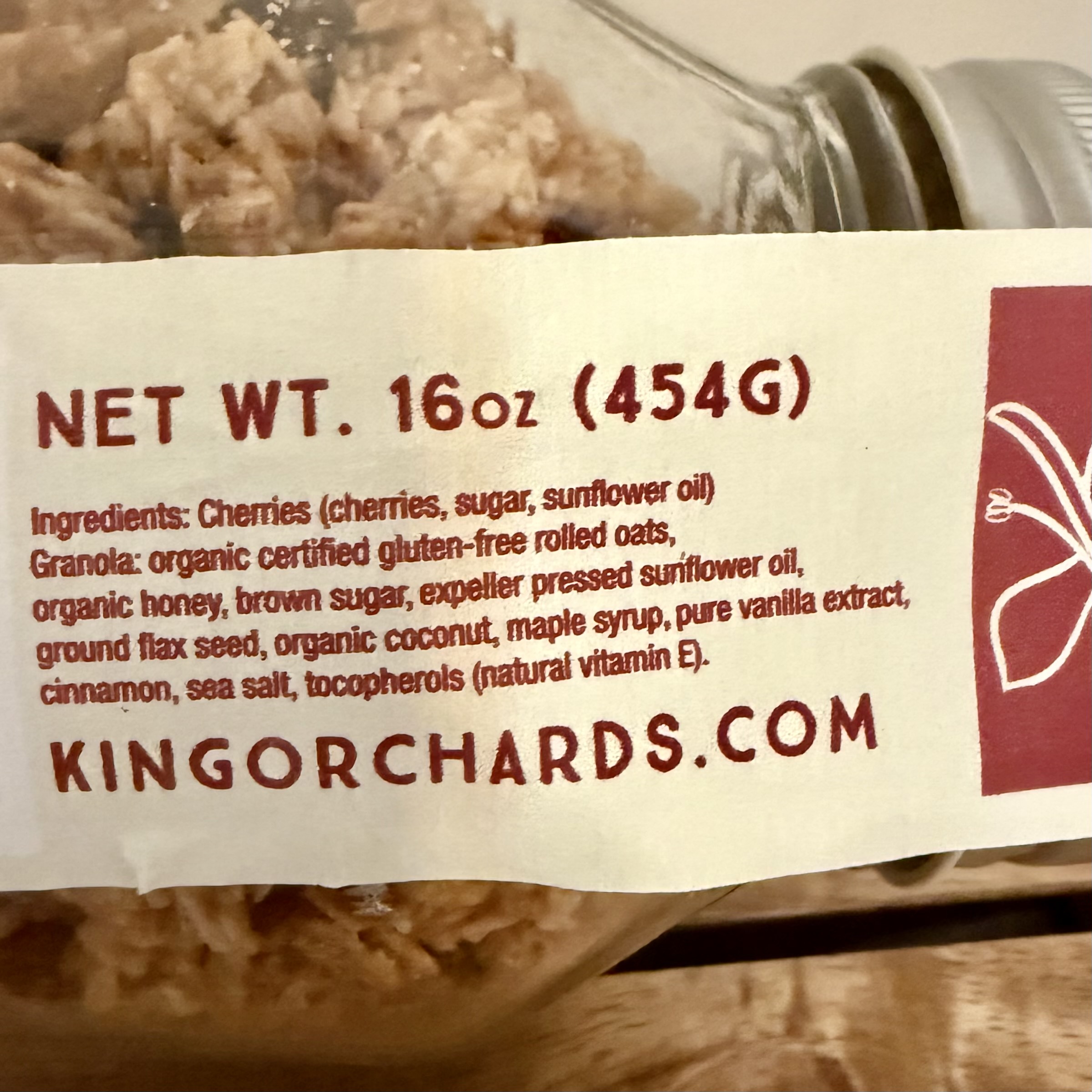 Farm Blended Granola with Dried Cherries, Vanilla, and Maple.
