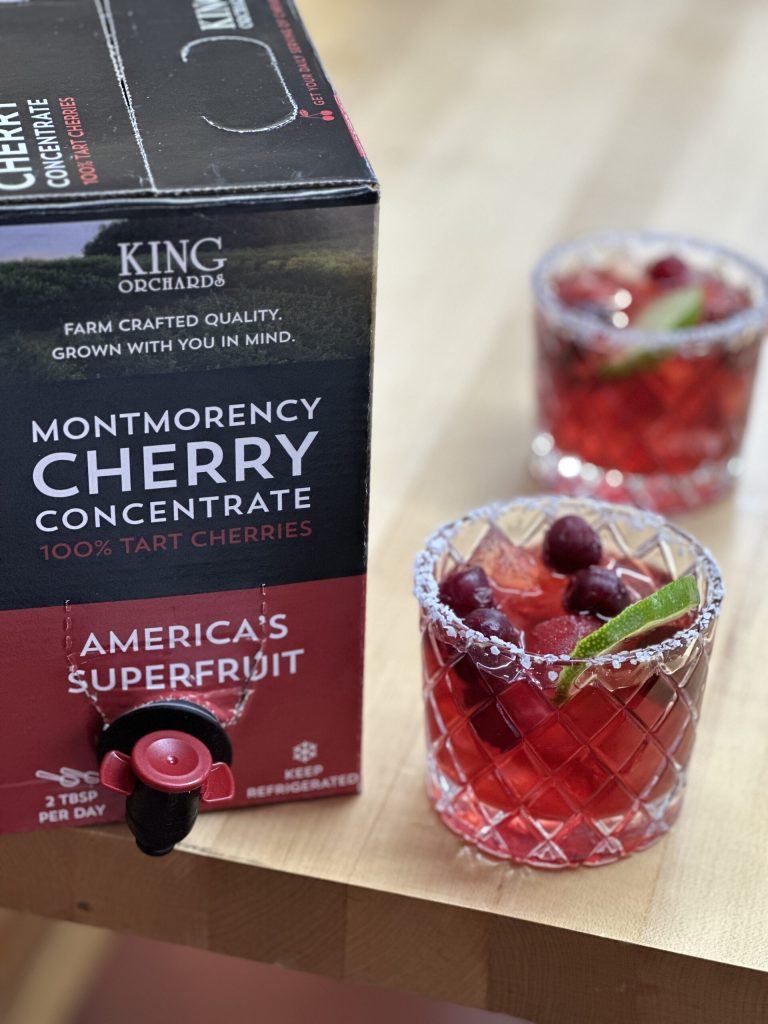 1/2 cup KO Montmorency Tart Cherry Juice http://www.kinghttps://kingorchards.com/2011/05/03/mixing-cherry-juice-concentrate/ 1/2 cup organic can sugar 2 cups frozen KO Montmorency Tart Cherries 2 cups chilled white grape juice Pinch of salt Ice […]